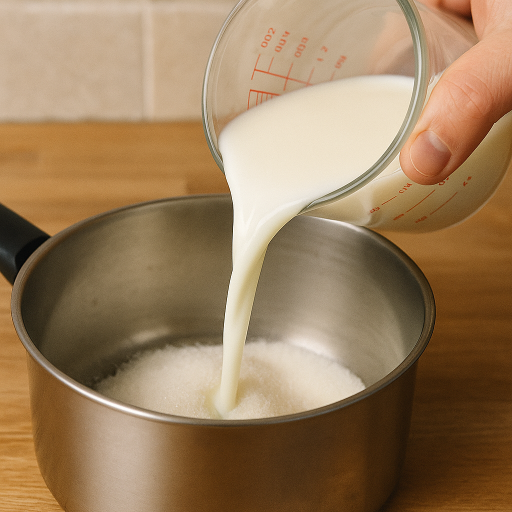 鍋に牛乳と砂糖を入れて温め、砂糖を完全に溶かす。