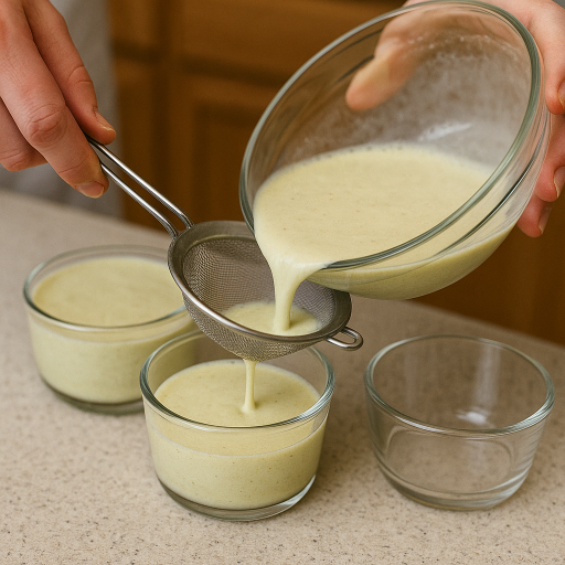 茶こしでこしながら耐熱容器に流し入れる。こうすると口当たりがなめらかに。