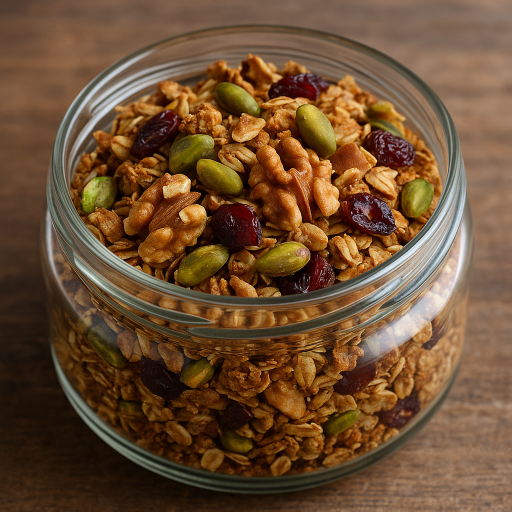 市販のグラノーラも手軽で美味しいですが、自家製なら甘さや油分を自分で調整でき、栄養価もぐっと高められます。特にピスタチオを加えることで、香ばしさと彩り、そして美容・健康に嬉しい栄養がプラスされ、毎日の朝食やおやつにぴったりな一品になります。