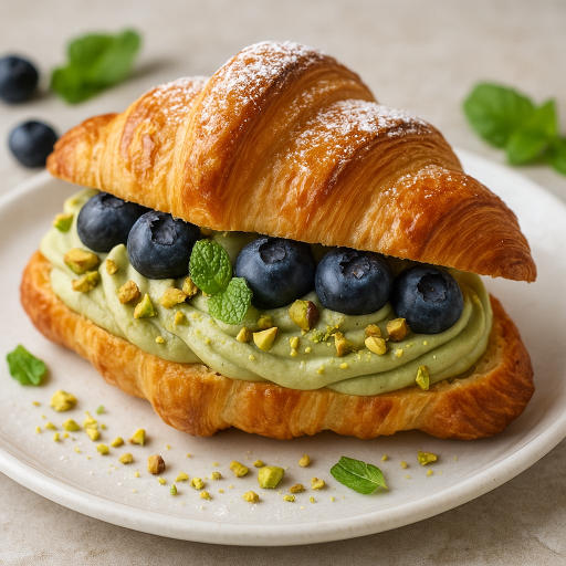 クロワッサンに濃厚なピスタチオクリームをたっぷり挟んだこの一品は、ひと口食べるだけで贅沢な気分になれるスイーツです。