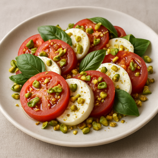 ピスタチオは細かく刻むと軽い食感が生まれ、シンプルなカプレーゼに深みを与えます。
